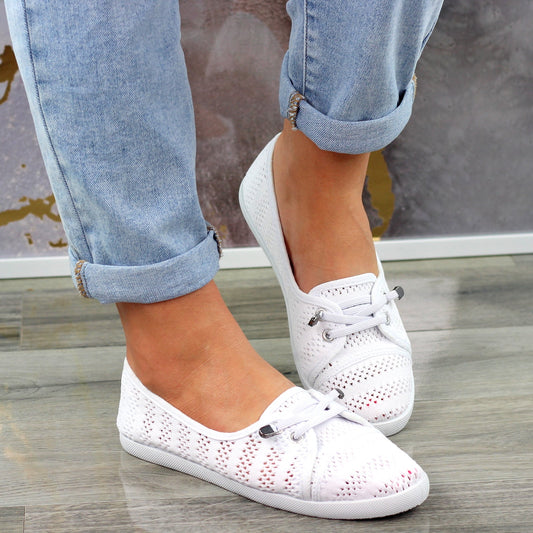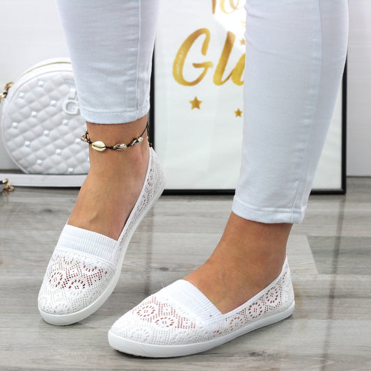 Białe ażurowe tenisówki damskie sportowe espadryle Minis
