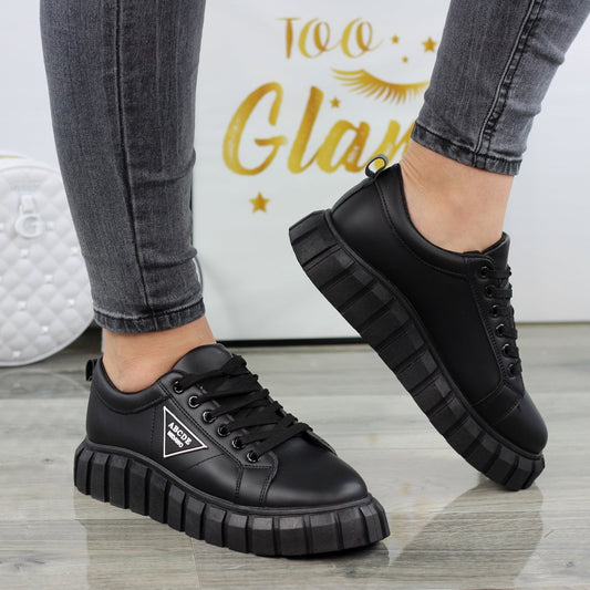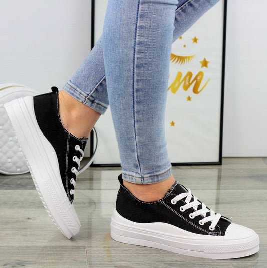 CZARNE TRAMPKI DAMSKIE NA GRUBEJ PODESZWIE
