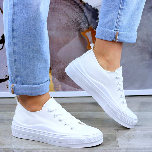 BIAŁE GŁADKIE MATERIAŁOWE TRAMPKI DAMSKIE FASHION