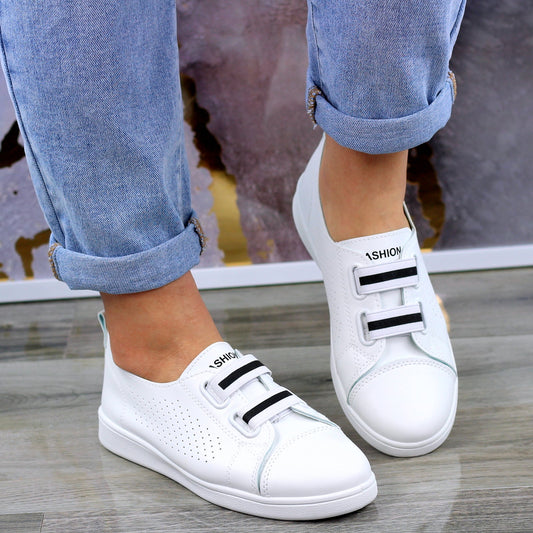 MODNE BIAŁO SKÓRZANE TRAMPKI DAMSKIE DZIURKOWANE FASHIONS