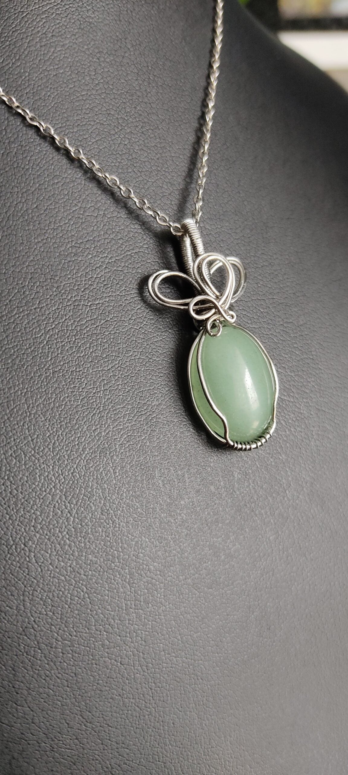 Ręcznie robiony wisiorek z awenturynem. Wykonany techniką wire wrapping z drutów ze stali chirurgicznej.