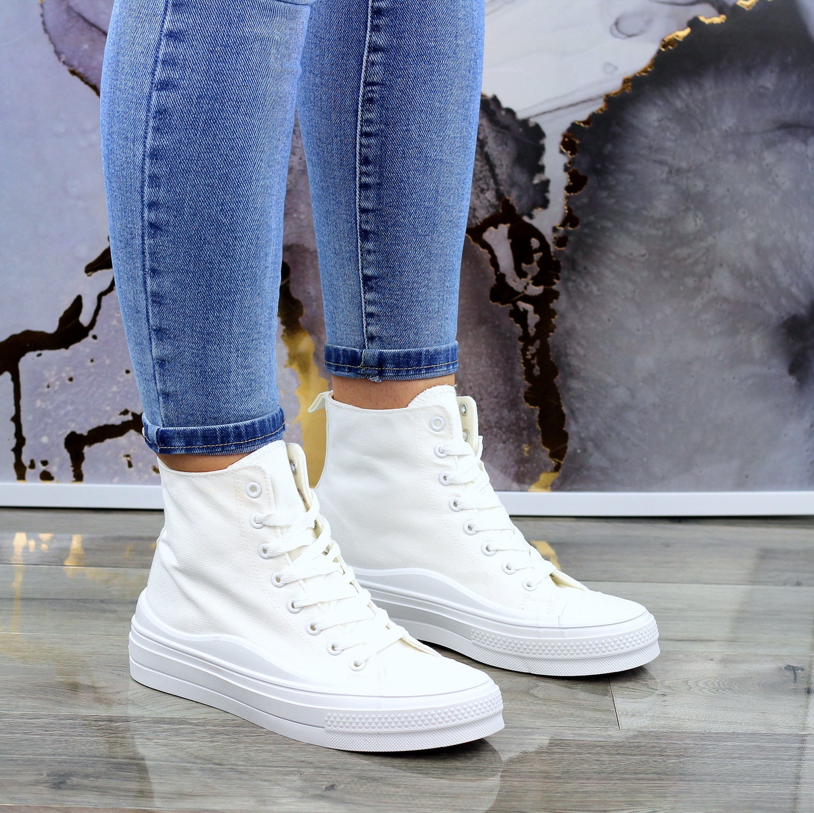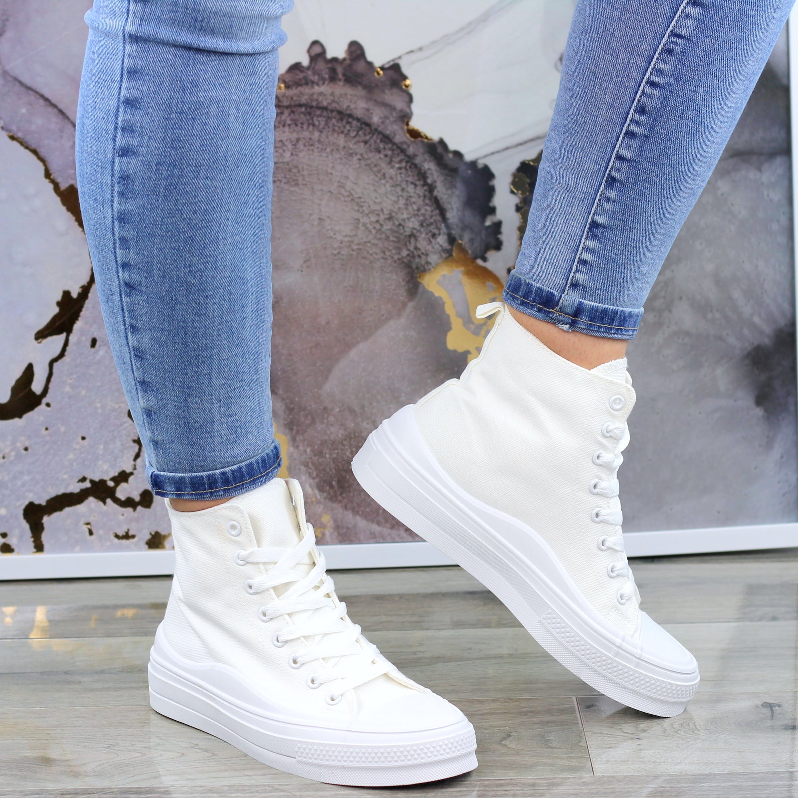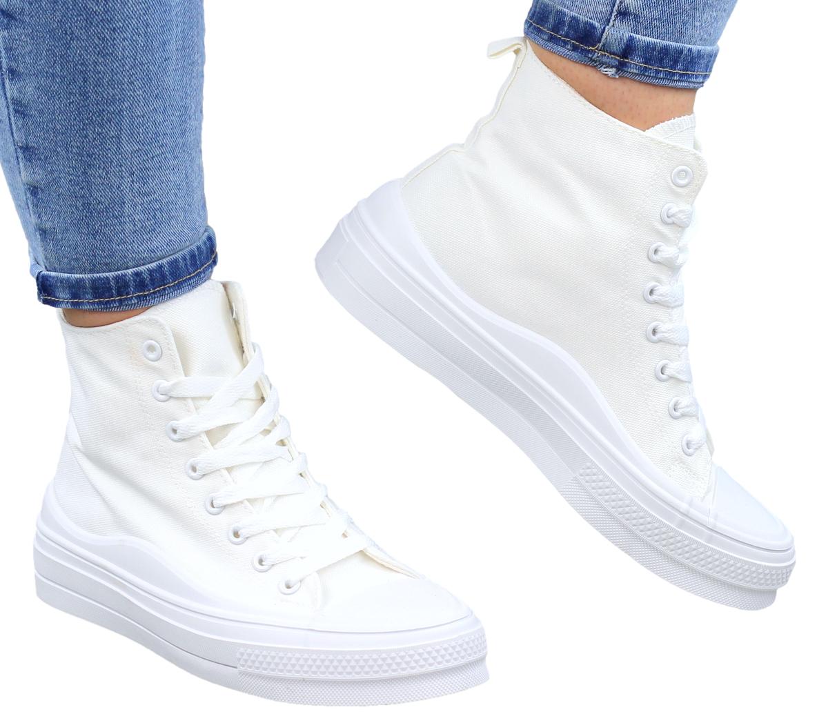 BIAŁE DŁUGIE TRAMPKI DAMSKIE NA GRUBEJ PODESZWIE