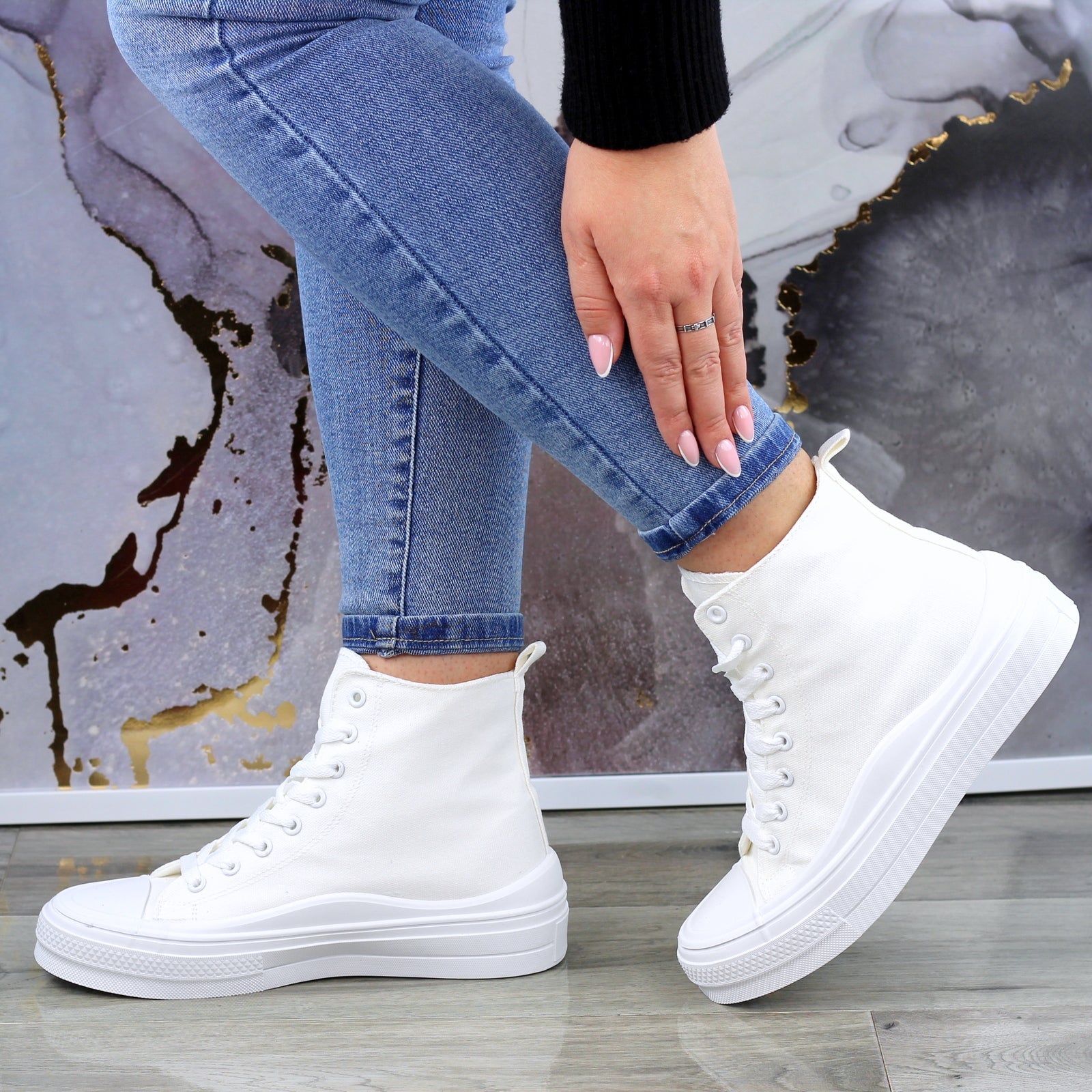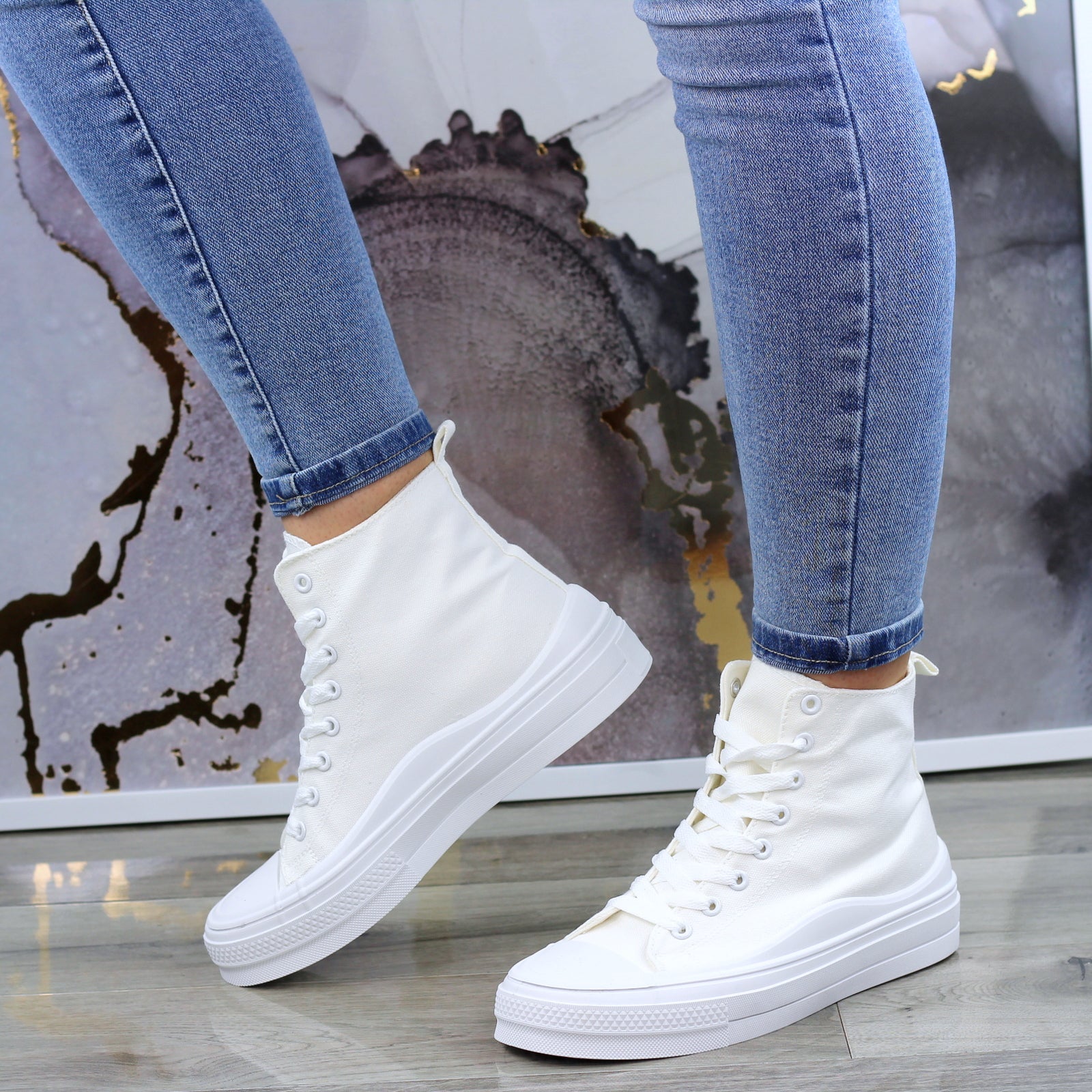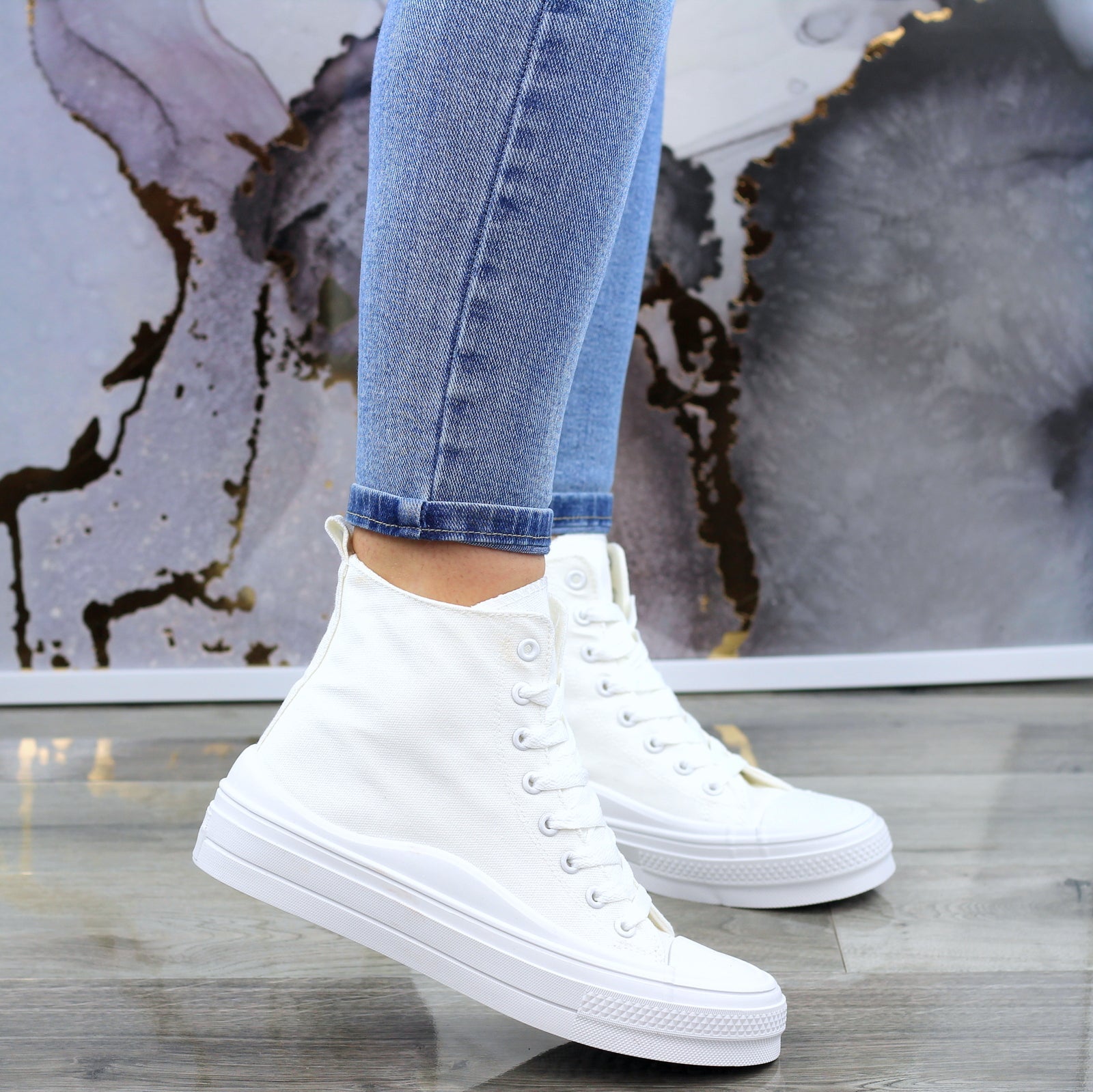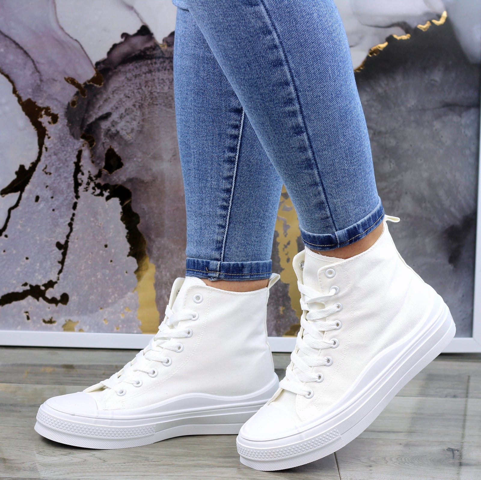 BIAŁE DŁUGIE TRAMPKI DAMSKIE NA GRUBEJ PODESZWIE