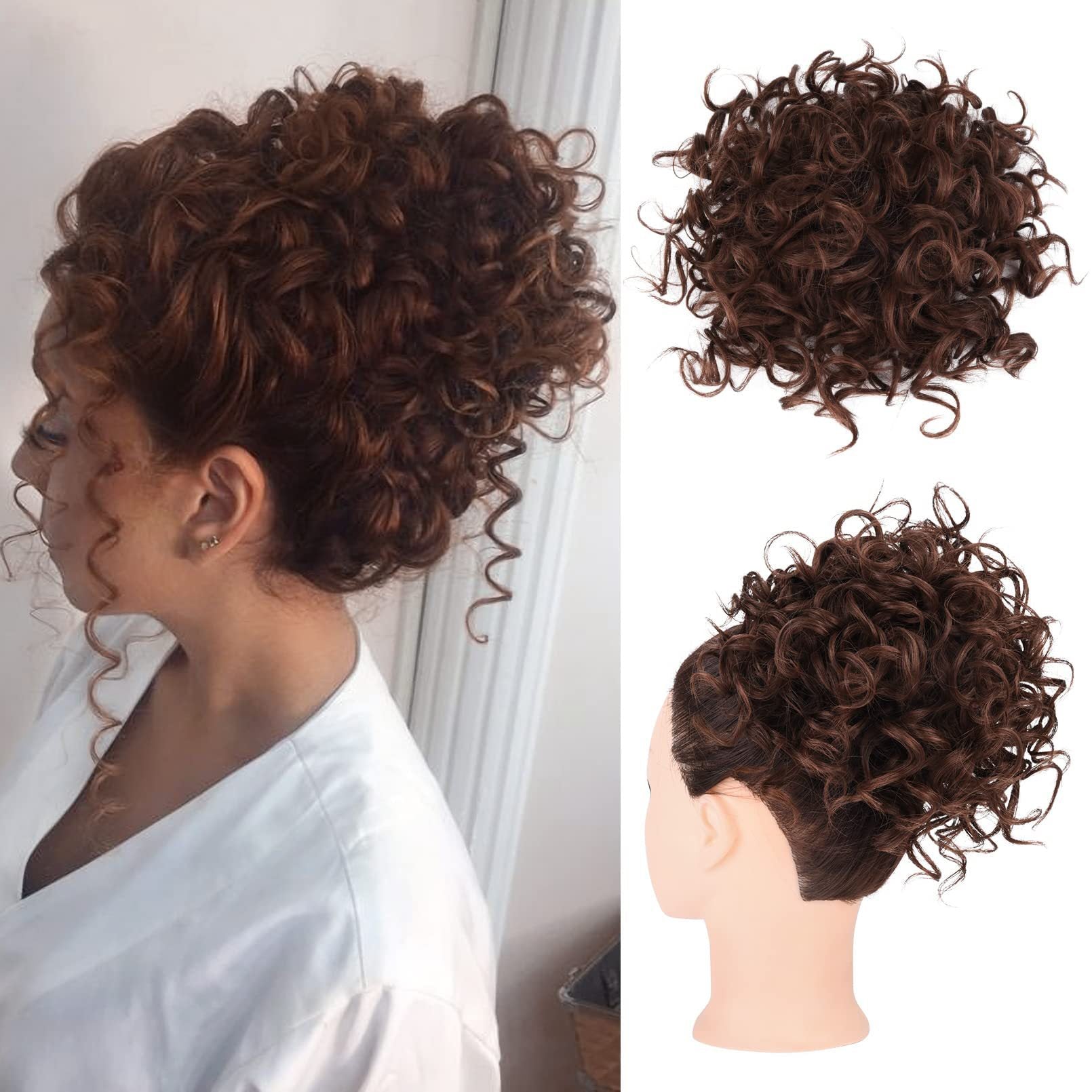 Luźny, krótki, kręcony kok z elastycznym sznurkiem
