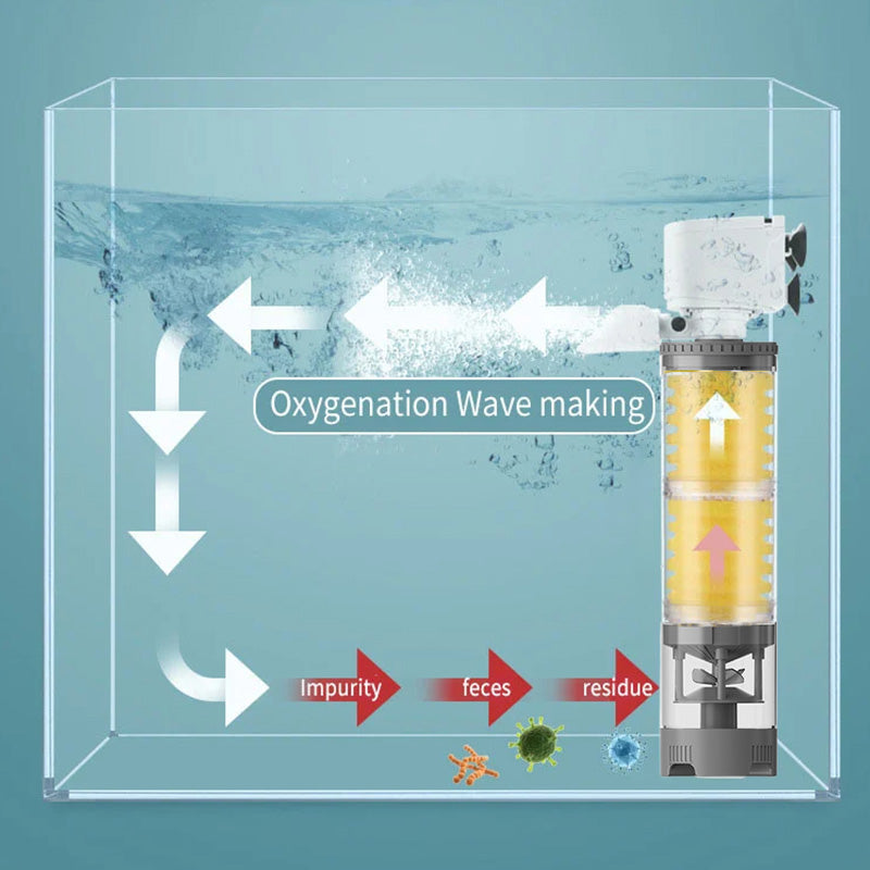 REGULOWANA OKSYGENACJA I TWORZENIE FAL: Filtr poprawia ruch wody i natlenienie dzięki regulowanemu przepływowi powietrza i możliwości tworzenia fal. Dostosuj wielkość fali i przepływ powietrza do potrzeb swojego akwarium, tworząc dynamiczne i zdrowe środowisko wodne.