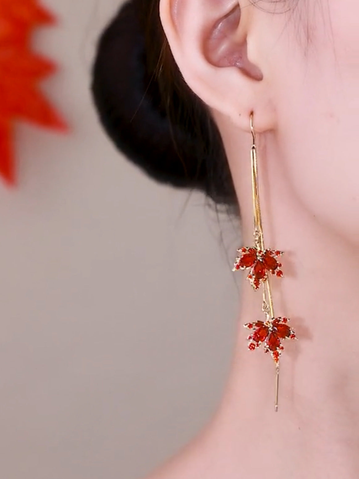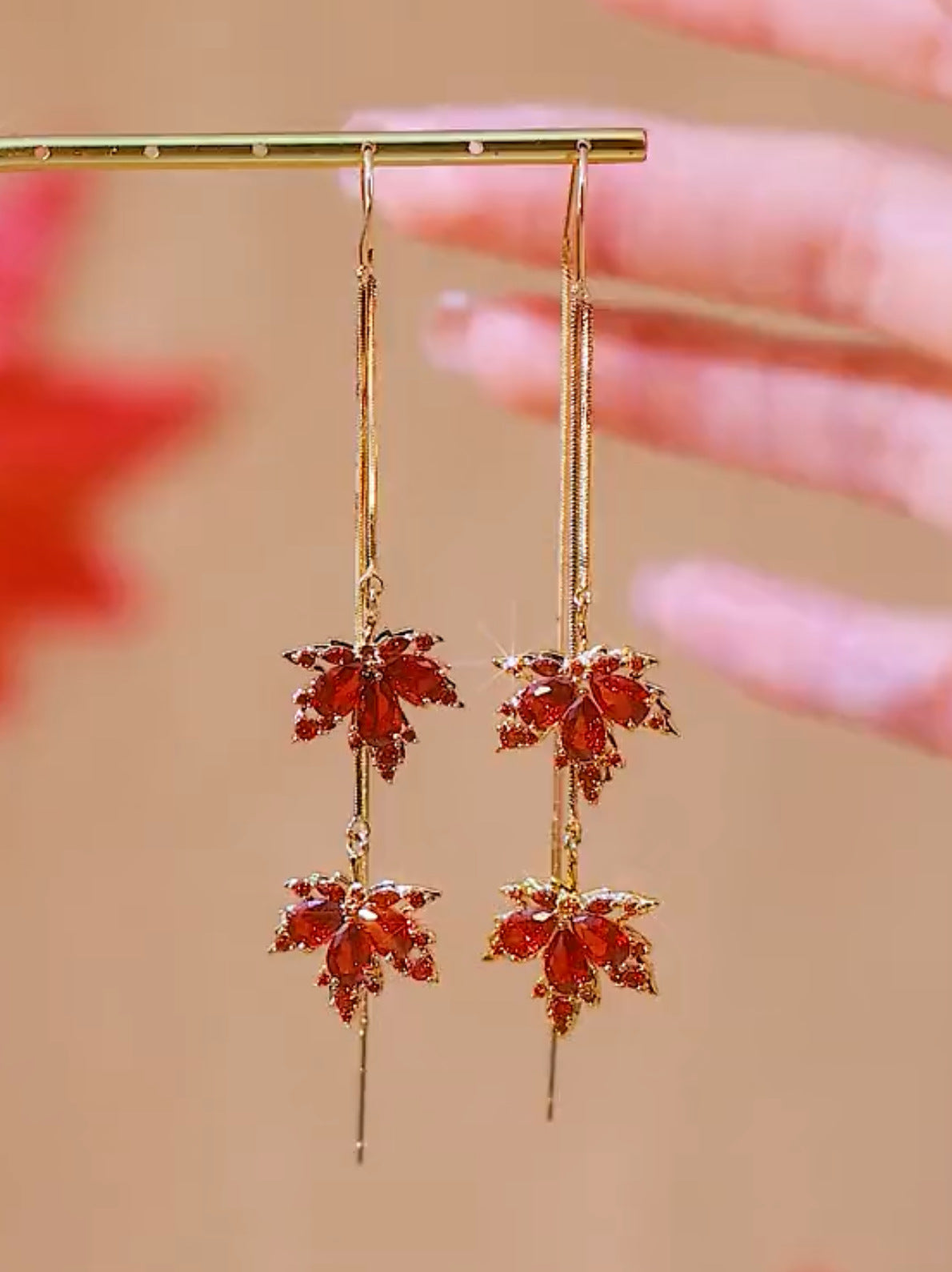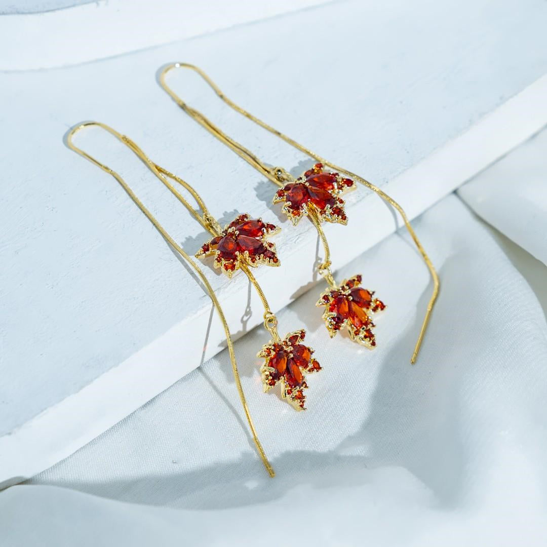 Kolczyki z frędzlami z podwójnym liściem klonowym