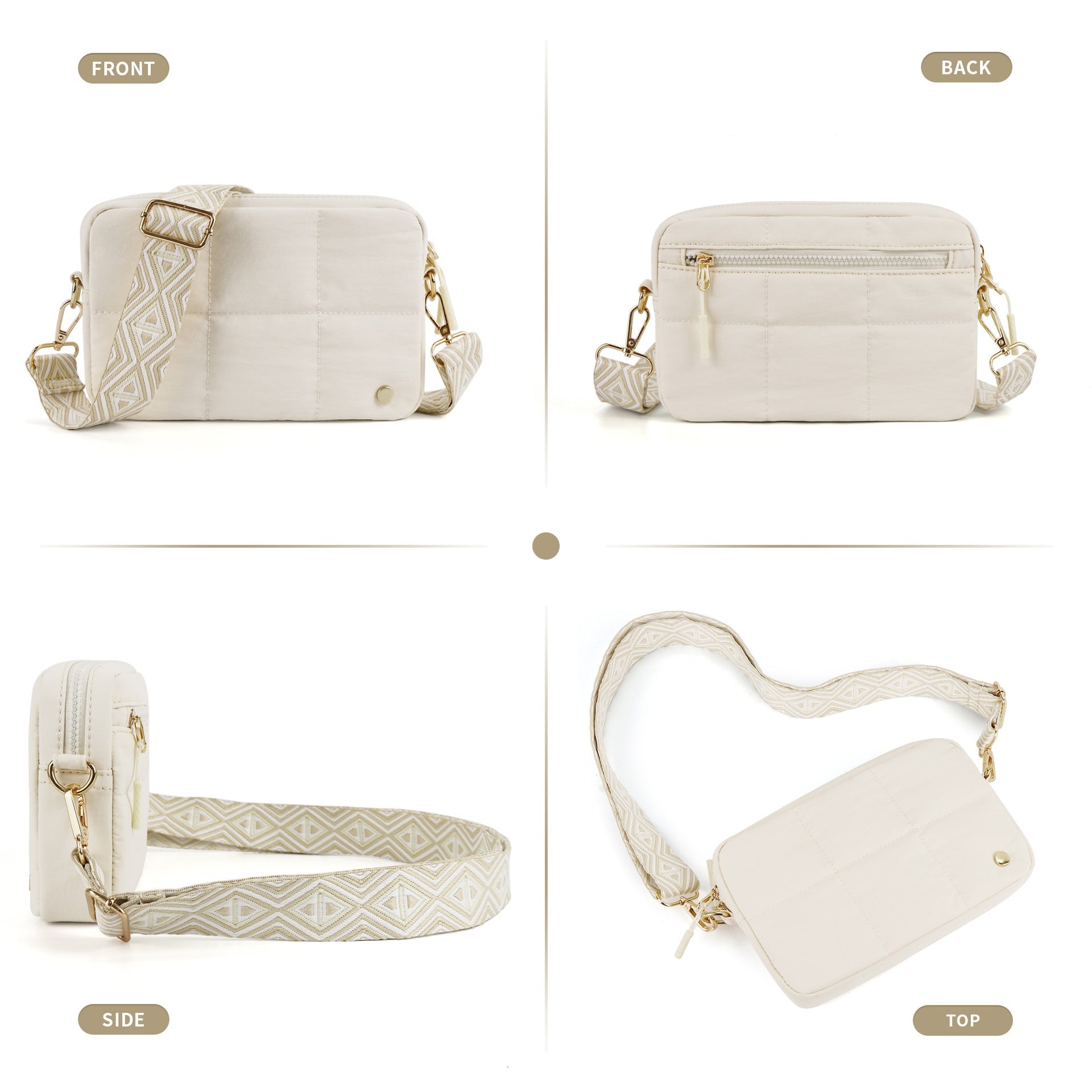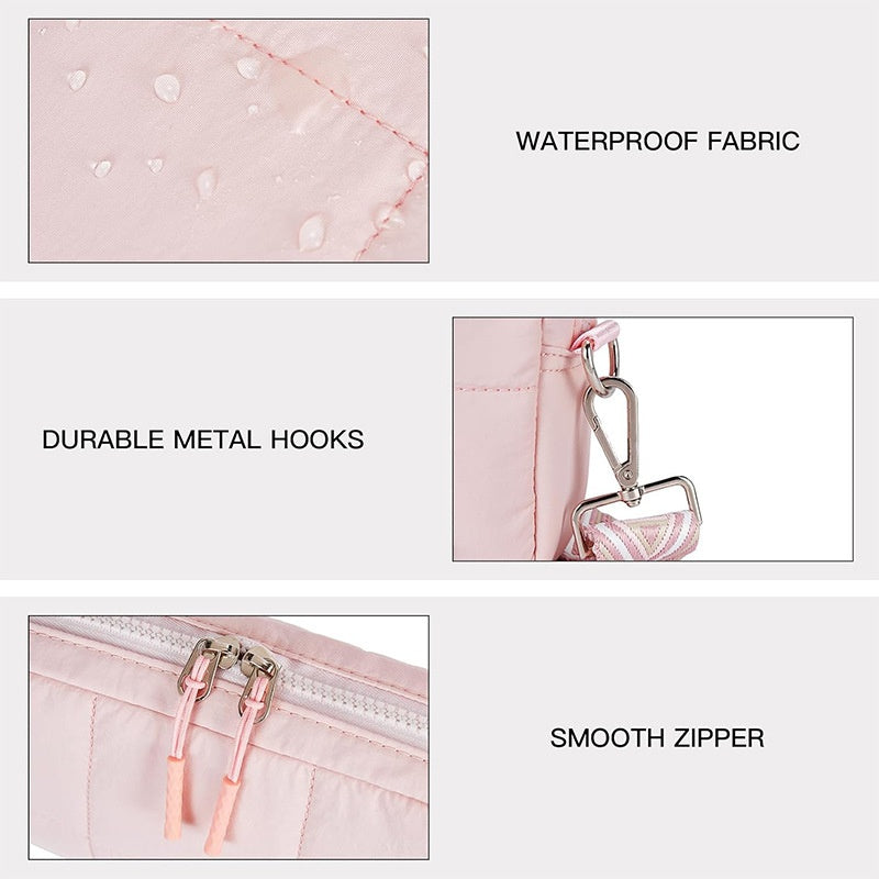 REGULOWANY PASEK Z MOCNYMI METALOWYMI HAKAMI: Regulowany pasek zapewnia wygodne dopasowanie, a solidne metalowe haczyki zwiększają trwałość. Można ją nosić na ukos lub na ramieniu, aby mieć wolne ręce.