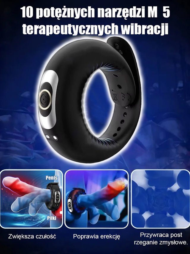 Pierścień masujący z wibracjami dla dorosłych opóźniający wytrysk.