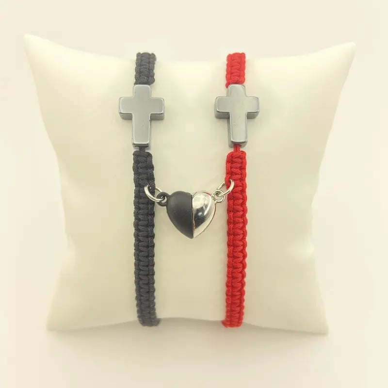 ✝️ Ten inspirujący zestaw bransoletek z krzyżem chrześcijańskim celebruje Waszą więź, czy to z partnerem, małżonkiem, czy kimś wyjątkowym. Przedstawia krzyż chrześcijański symbolizujący wiarę, nadzieję i miłość Jezusa. Magnetyczne elementy w kształcie serca symbolizują nierozerwalną więź między dwojgiem ludzi – razem w wierze, na zawsze w miłości.