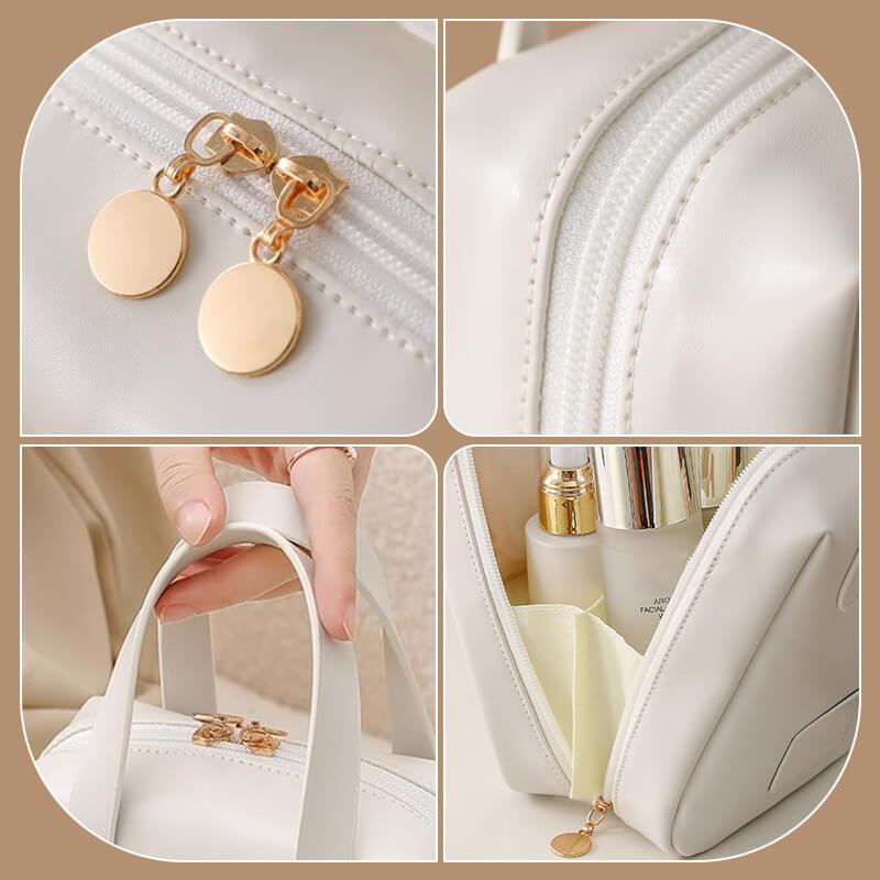 Kosmetyczkę można otworzyć pod kątem 270 stopni, dzięki czemu można zobaczyć cały makijaż naraz - a następnie szybko zamknąć, gdy jest się gotowym do wyjścia.