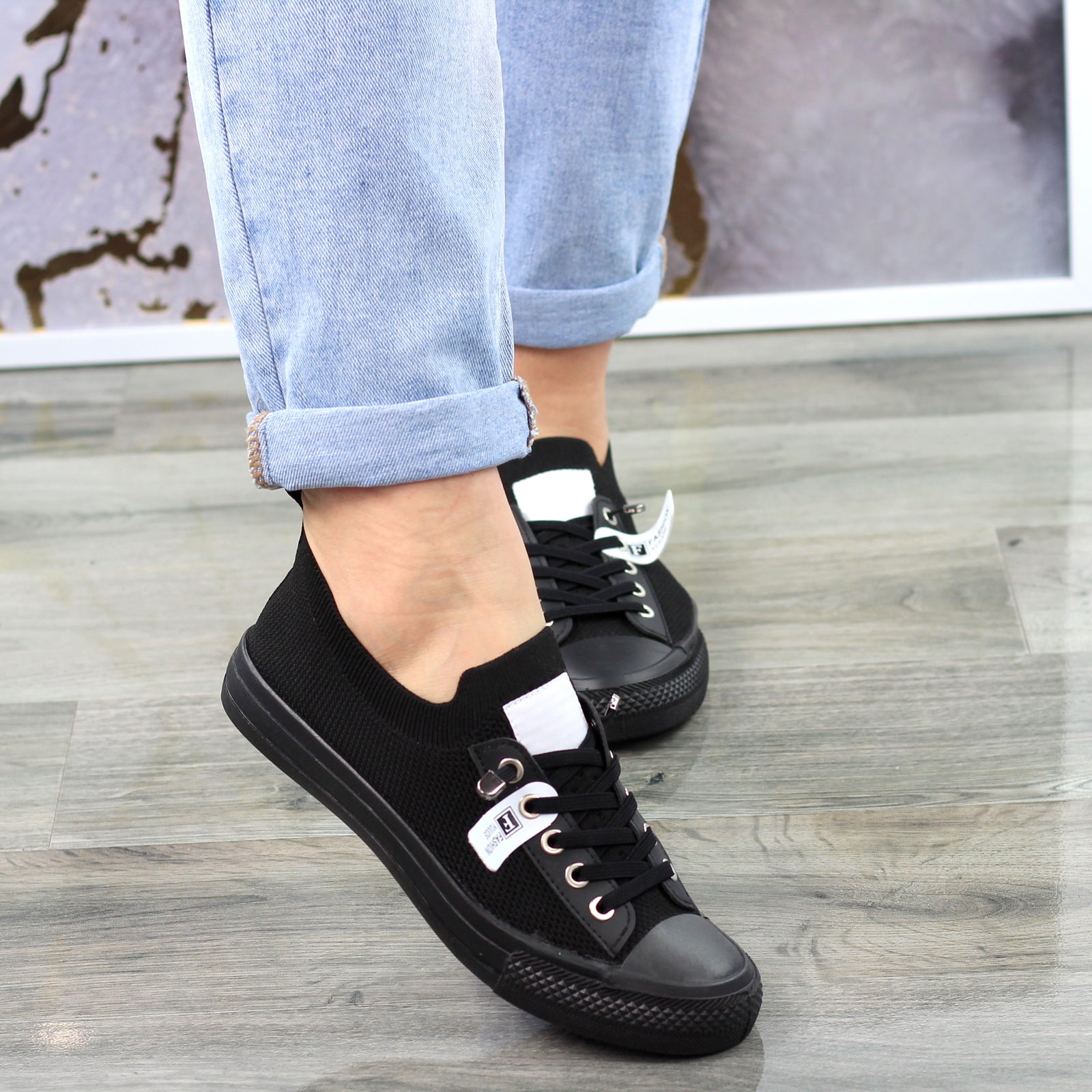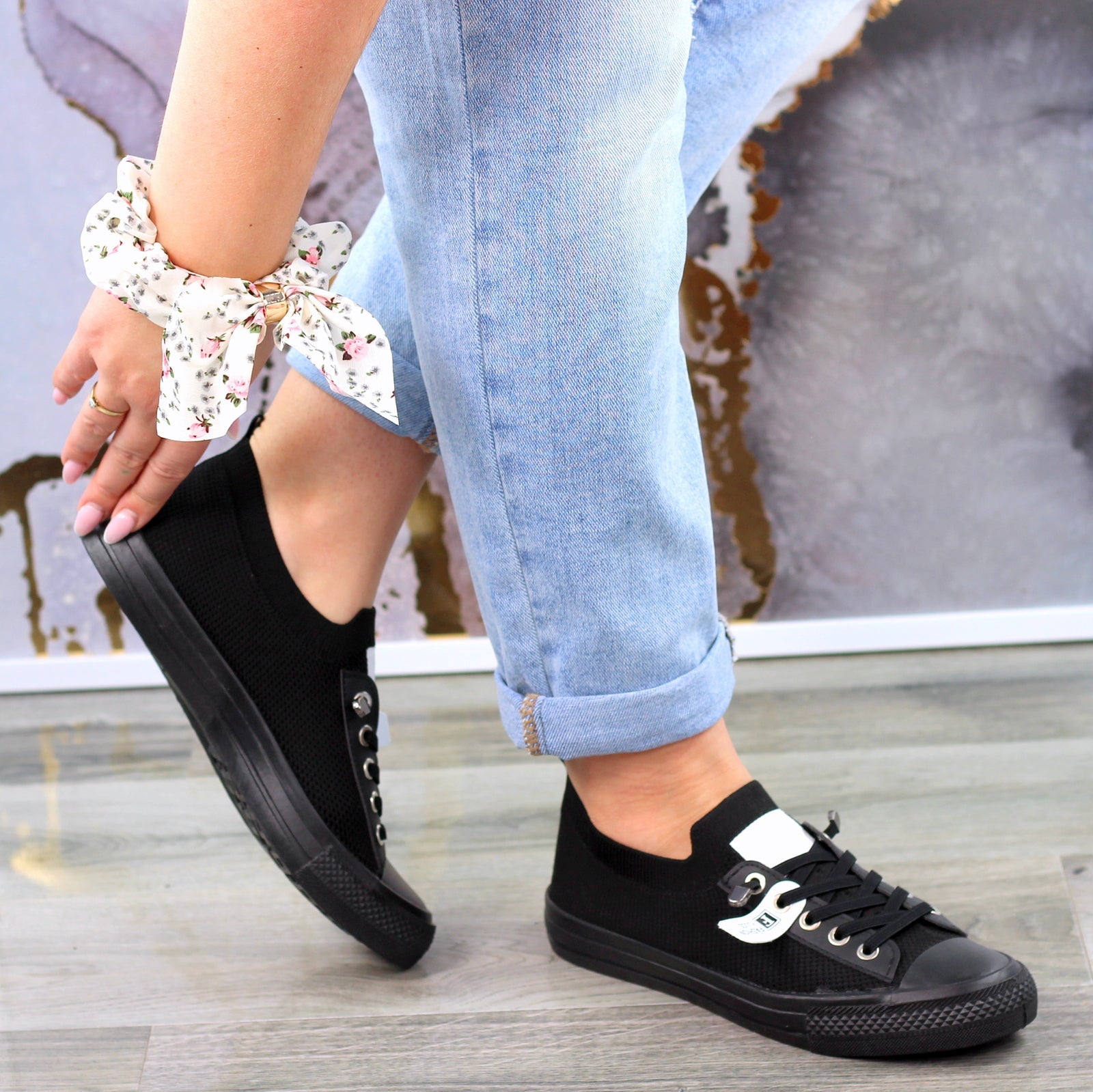 Czarne trampki mięciutkie sznurowane slim na wygodnej podeszwie wykonane z mięciutkiej elastycznej tkaniny.