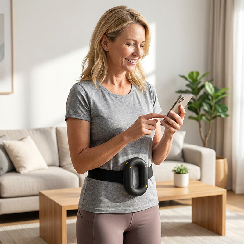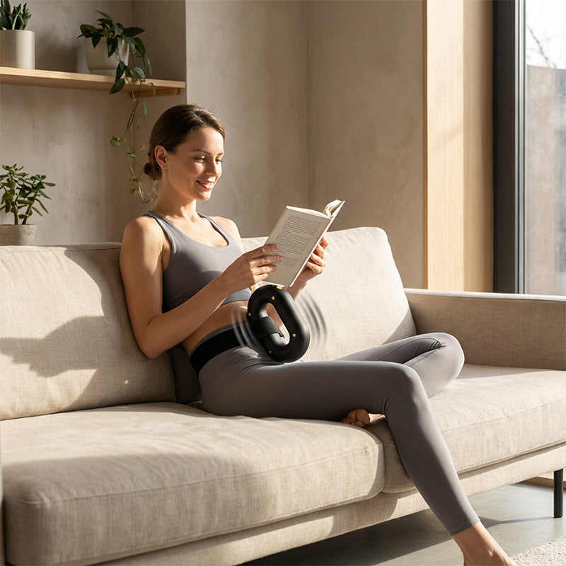Pomoc w postaci paska do obsługi bez użycia rąk- Przymocuj pierścień ochronny w trudno dostępnych miejscach, takich jak górna część pleców, ramiona lub łydki. Ta innowacyjna funkcja umożliwia wywieranie stałego, silnego nacisku bez konieczności sięgania, dzięki czemu urządzenie może skutecznie działać na wybrane grupy mięśni, podczas gdy Ty zajmujesz się innymi zadaniami lub cieszysz się głębszym relaksem.