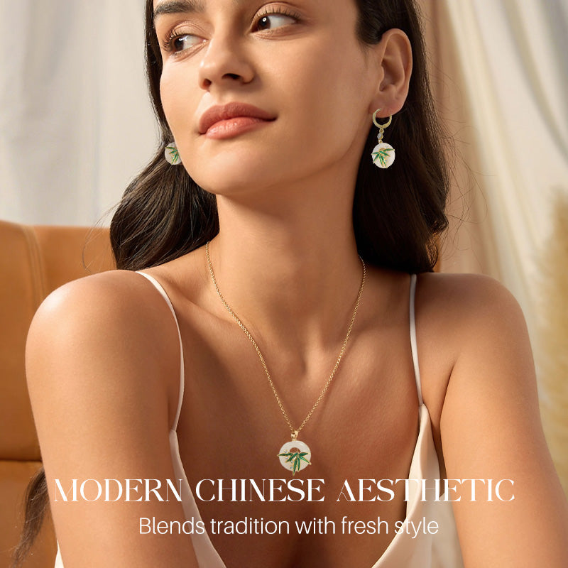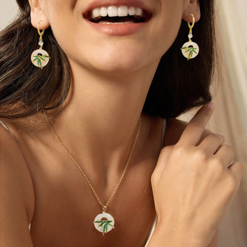 Nowoczesne kolczyki i naszyjnik z bambusa w stylu orientalnym