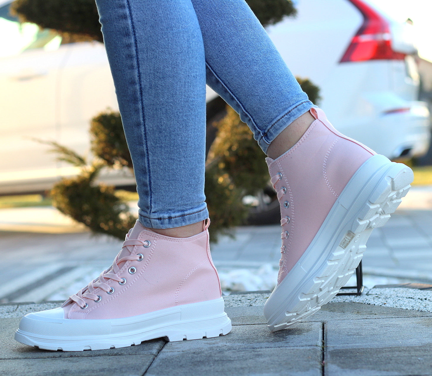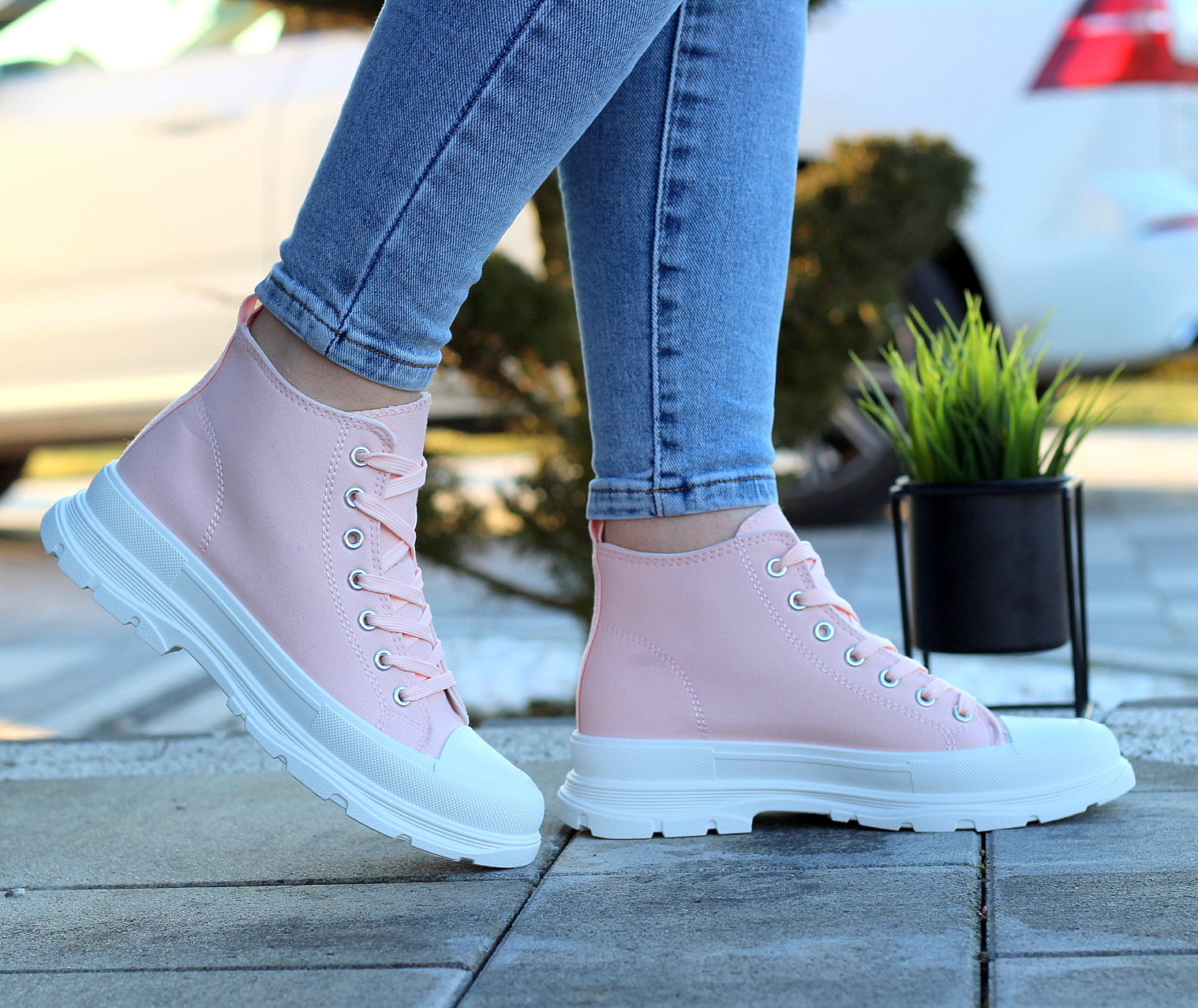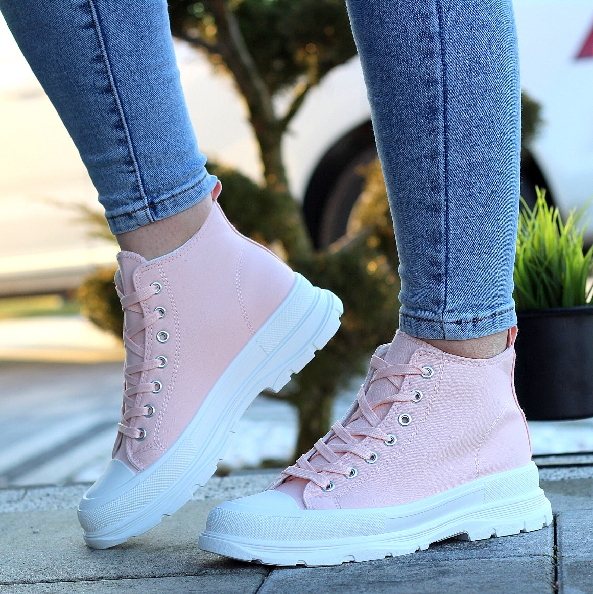 Wysokie Różówe Trampki Damskie Sznurowane Star