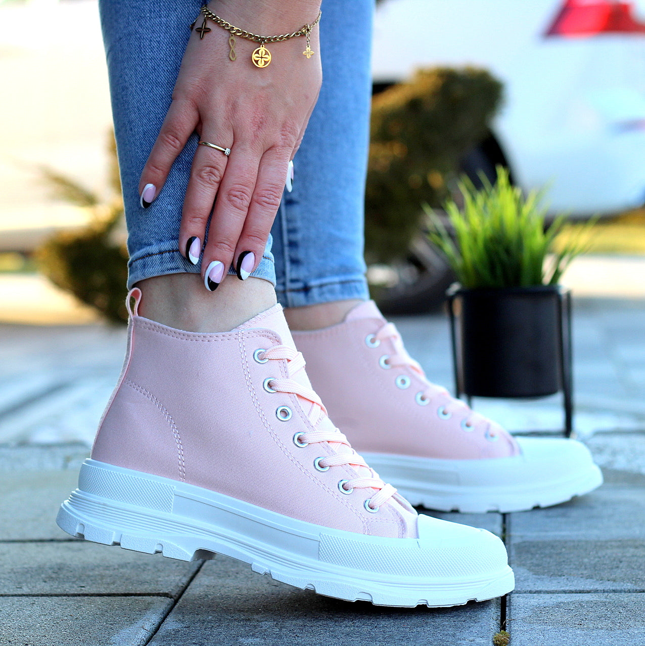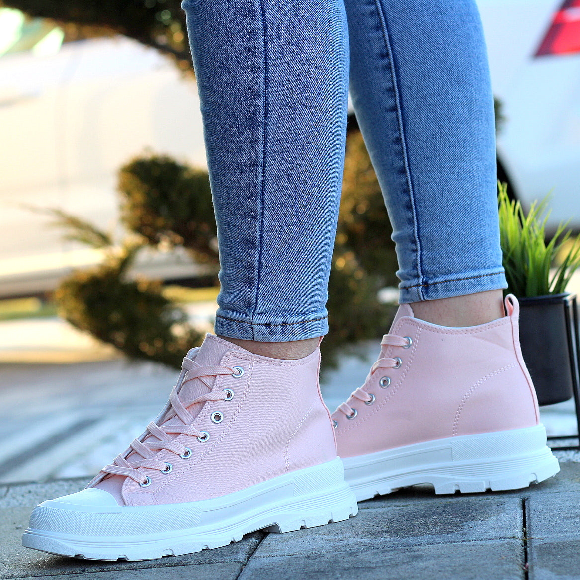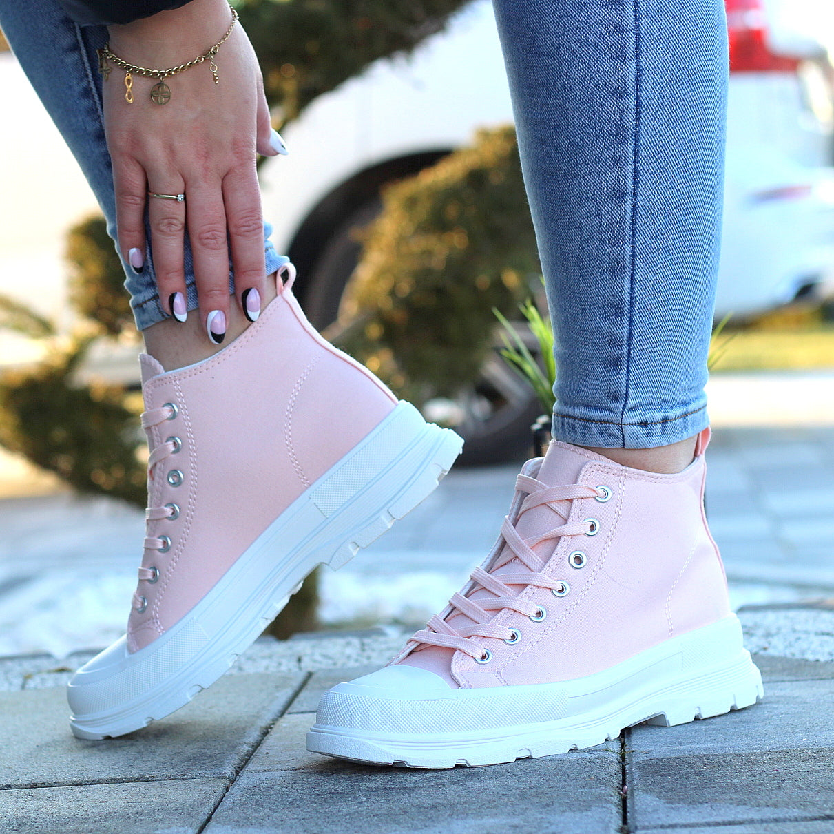 Wysokie Różówe Trampki Damskie Sznurowane Star